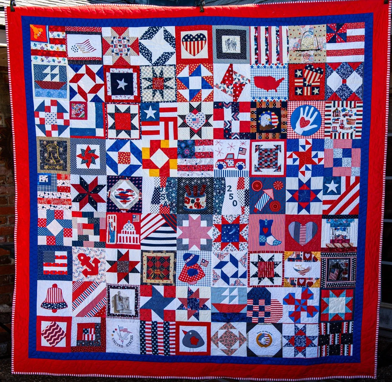 A stunning red, white & blue quilt pieced by Red River Quilters to celebrate America’s 250th birthday! You can pickup or purchase raffle tickets at our RRQ guild meetings from May to September & at our Quilt Show in September.