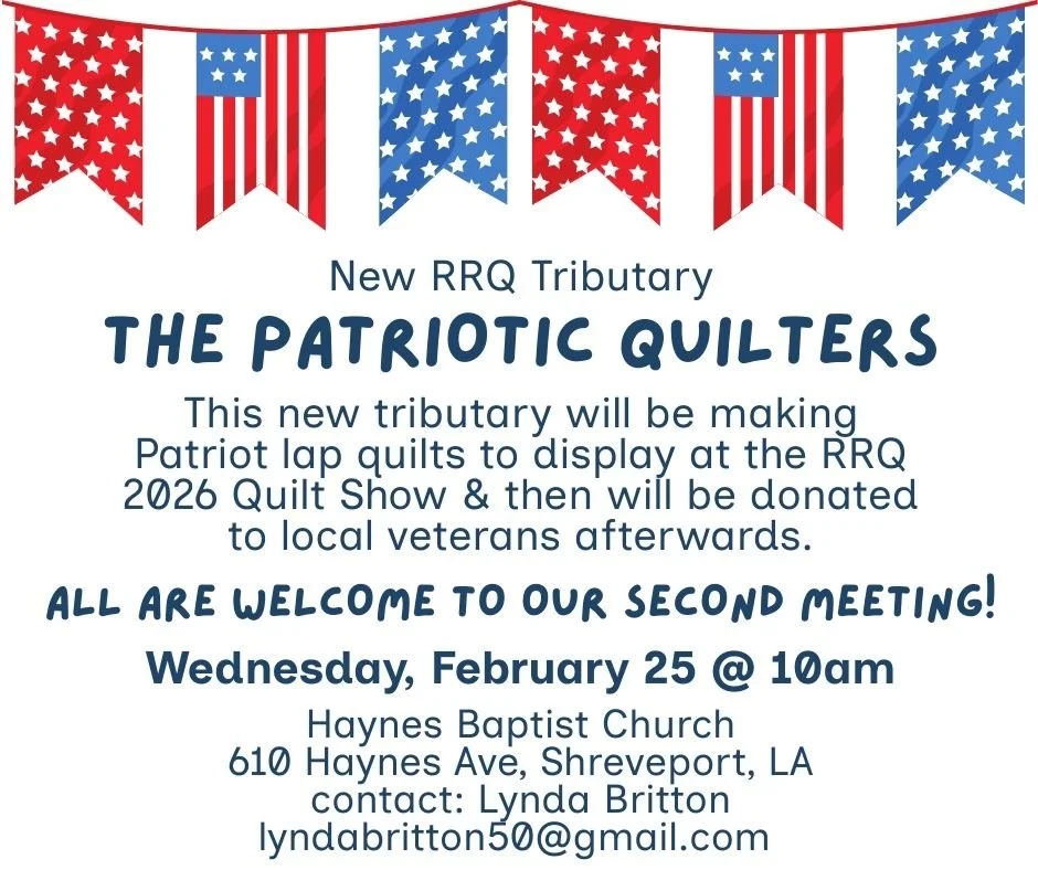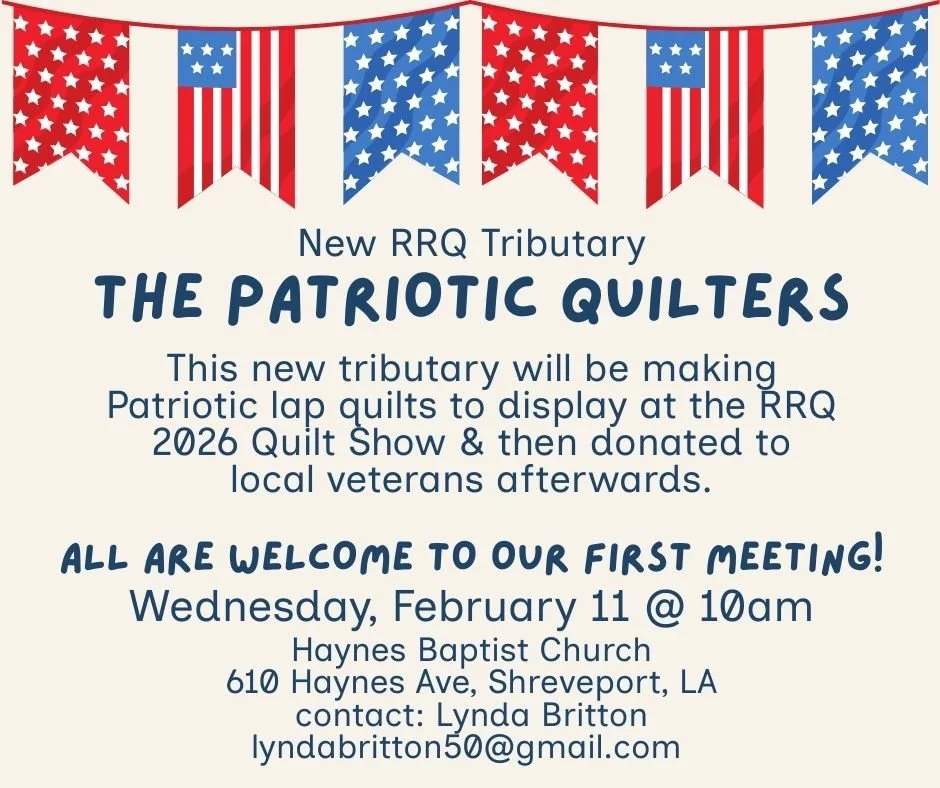 The Patriotic Quilters have only one mission in 2026 & that's to sew patriotic inspired lap blankets all year long, display them at our RRQ Quilt Show in September & then donate them to our local veterans.